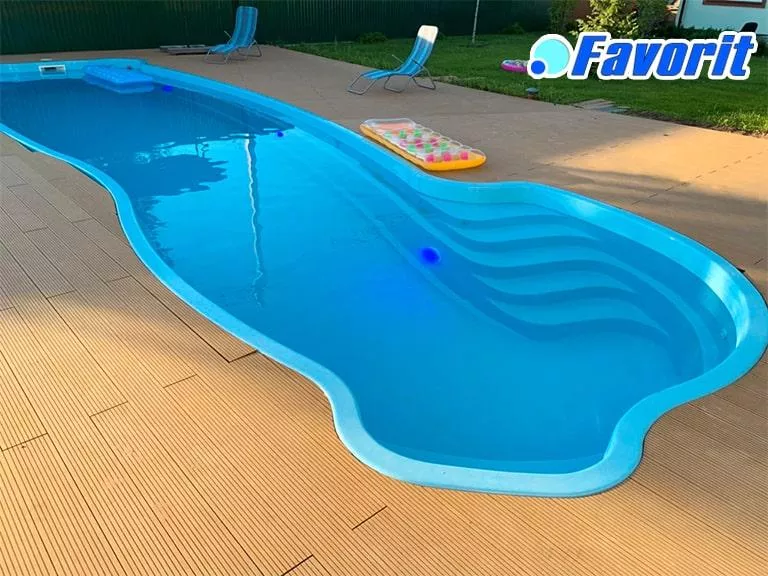 Комфортные ступени с анти-слип поверхностью расположены так, чтобы в бассейне оставалось максимум плавательной зоны. Места отдыха – это уникальное место для уединения и релакса (гидро-, аэромассаж). Этот бассейн похож на необитаемый остров вдалеке от города и шума, где так приятно остаться отдохнуть.