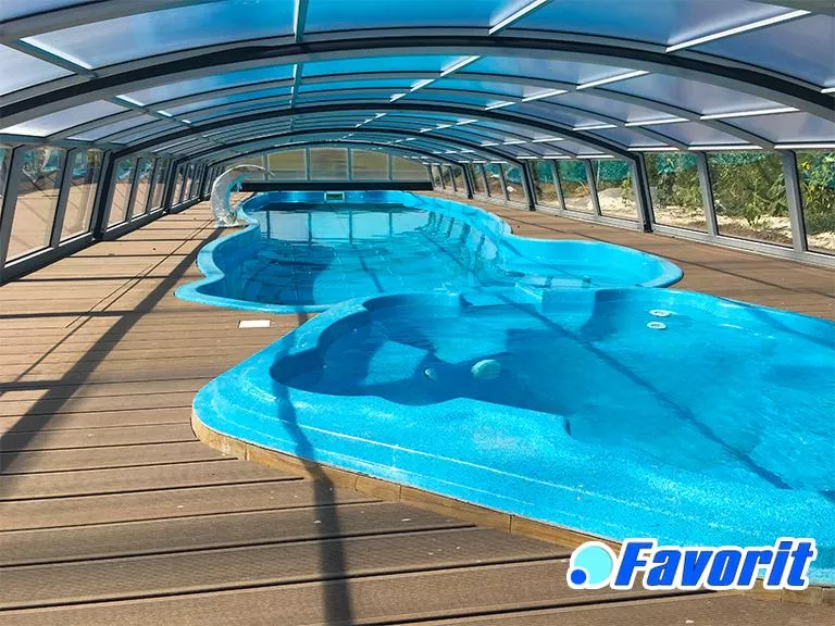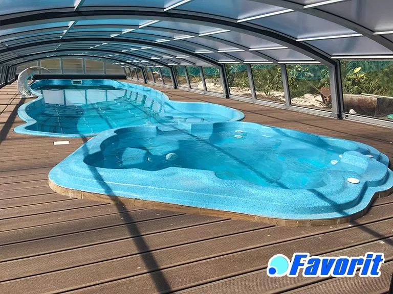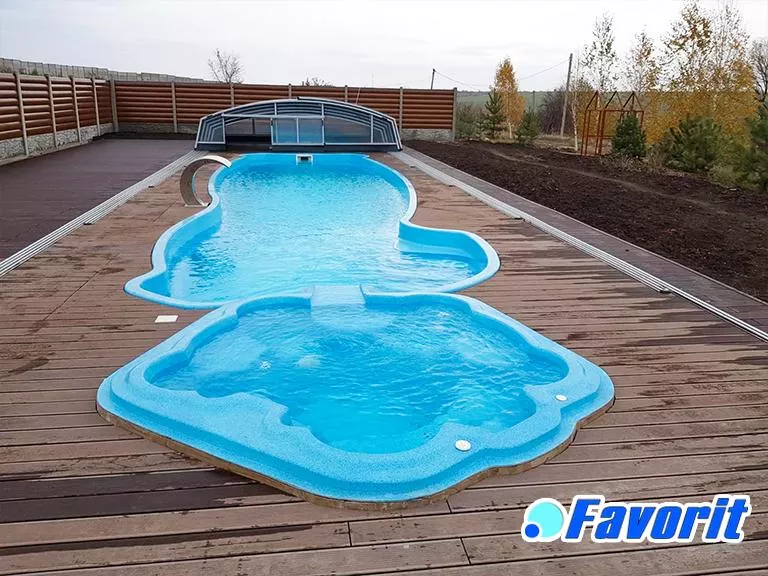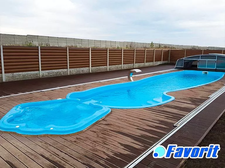 «Монако 13» – это бассейн, который восхищает своими размерами и влюбляет своей изысканной формой. 13-метровый бассейн с максимальной плавательной зоной, плавным перепадом глубины, удобными не скользкими ступенями и комфортными зонами отдыха. В глубокой части бассейна можно попрыгать и понырять, а мелкая зона незаменима для тех, кто учится плавать. Этот композитный бассейн можно оснастить противотоком, гидромассажем, подогревом и всем необходимым. Монако 13 – Самый большой бассейн – мечта каждого, кто задумался о том, чтобы купить бассейн для большой семьи или для отеля.