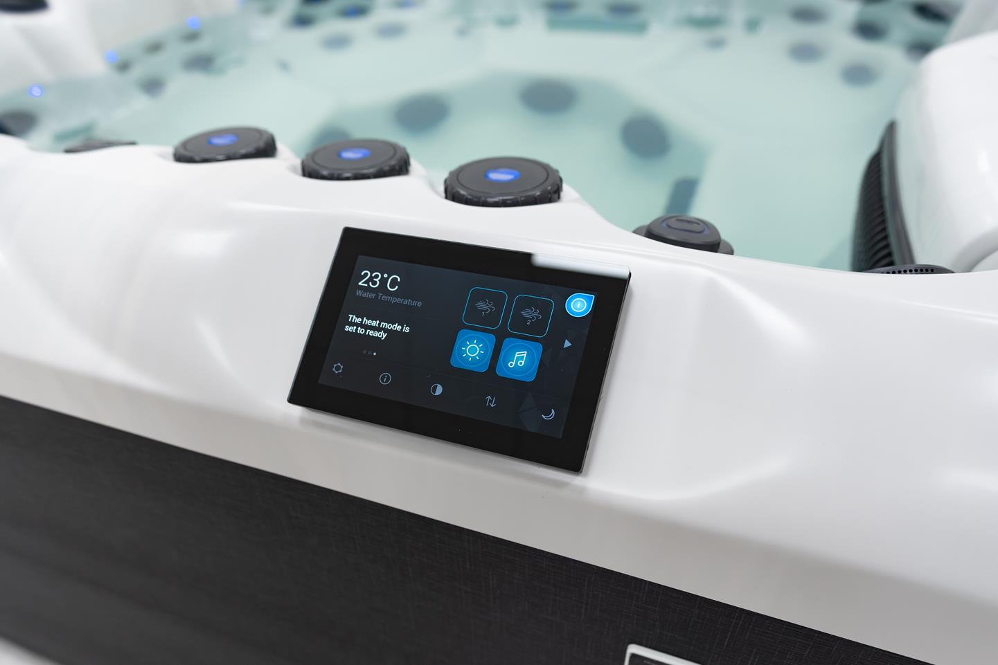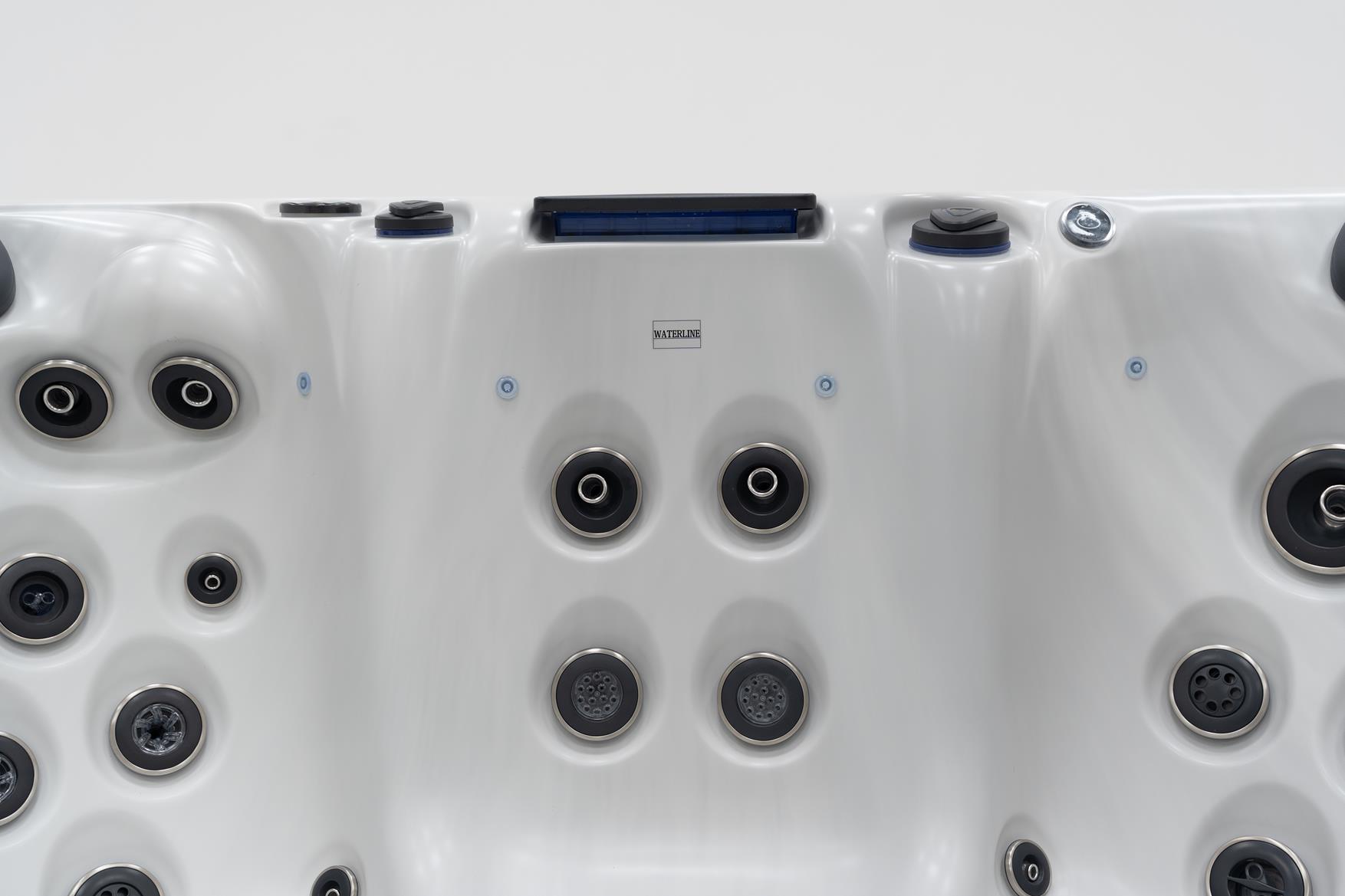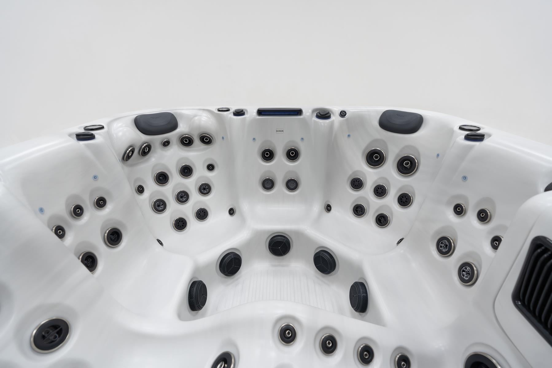 Это джакузи оснащено эксклюзивным шкафом Shadow Weave и доступно с акриловыми покрытиями Matte Black (матовый черный), Matte White (матовый белый) или Sterling Silver Gloss (глянцевое стерлинговое серебро). Днем оно излучает сдержанную элегантность, а ночью встроенная LED-подсветка превращает его в сияющий центр внимания.