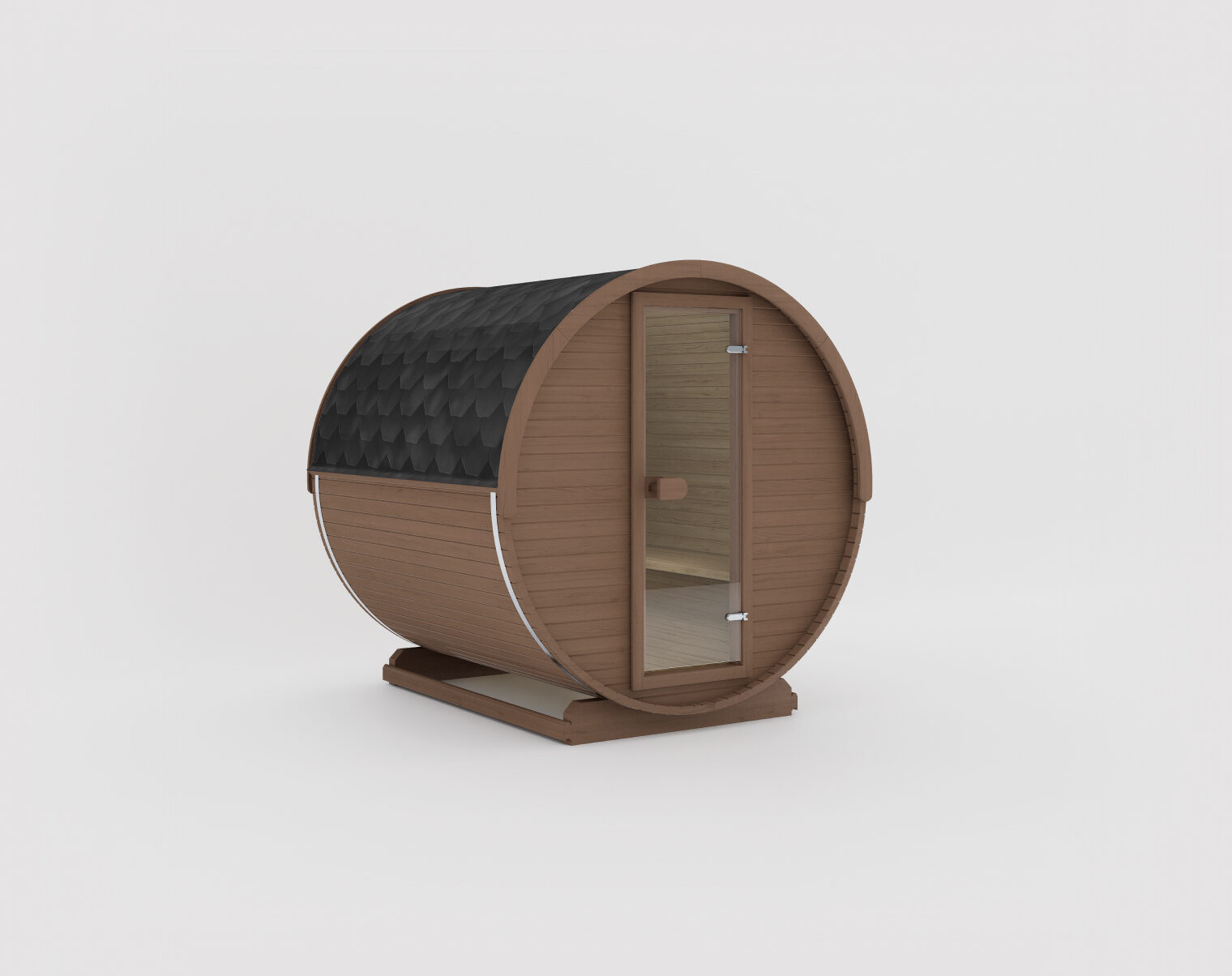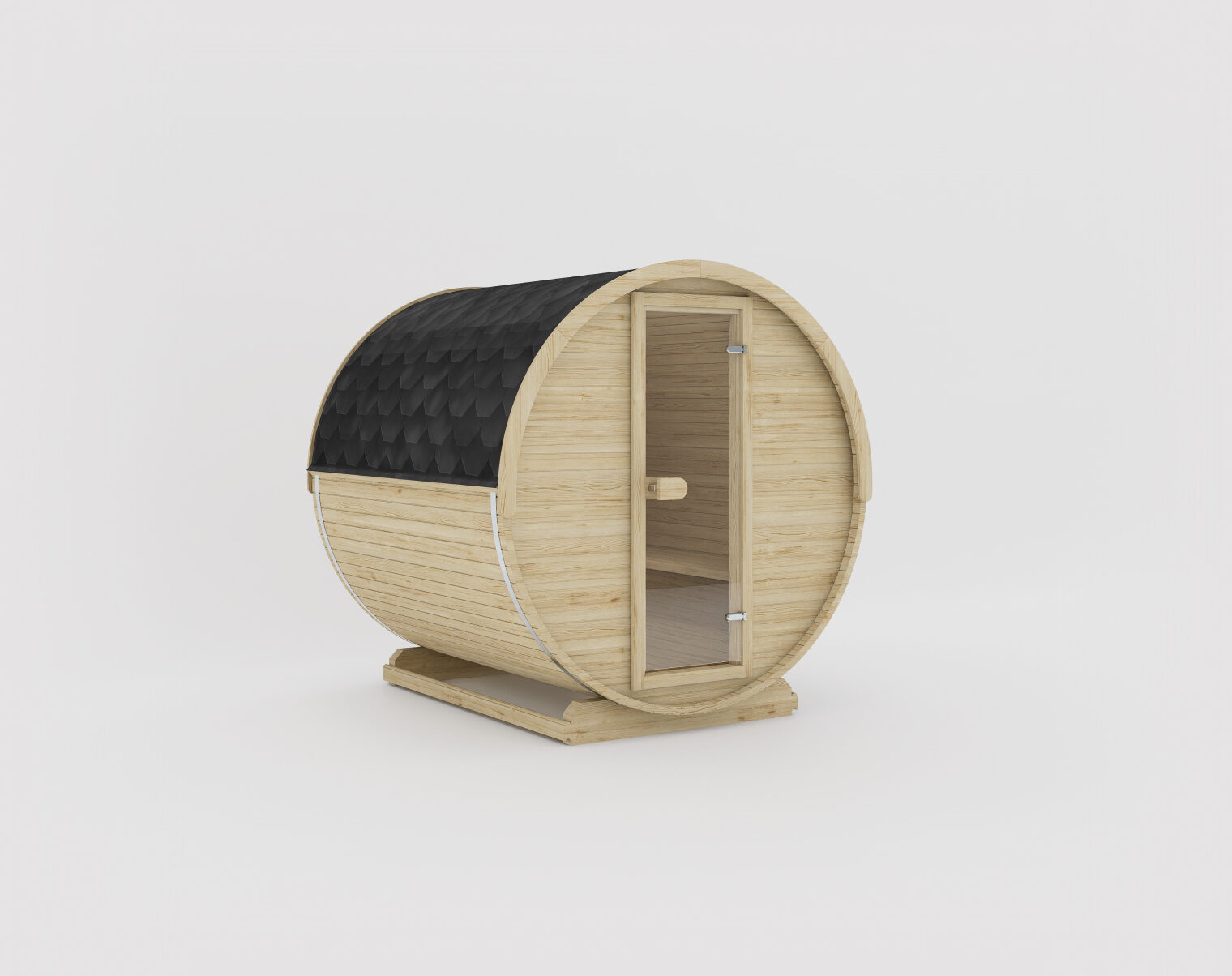 Современная сауна бочкообразной формы с просторным интерьером и минималистичным дизайном. Снаружи компактная, но внутри достаточно вместительная для полноценного расслабляющего парения. Для дополнительной защиты или функциональности смотрите модель Joris Grand.