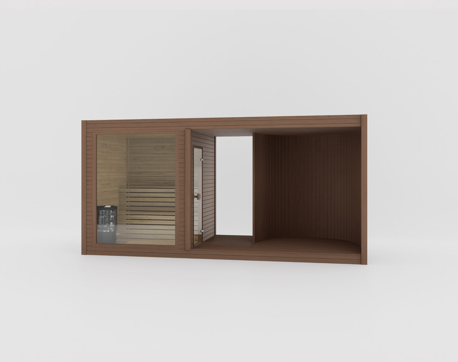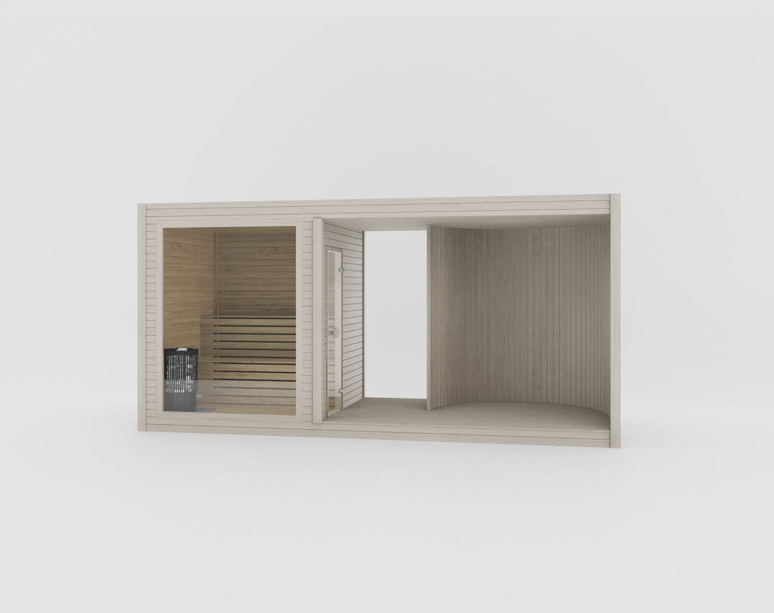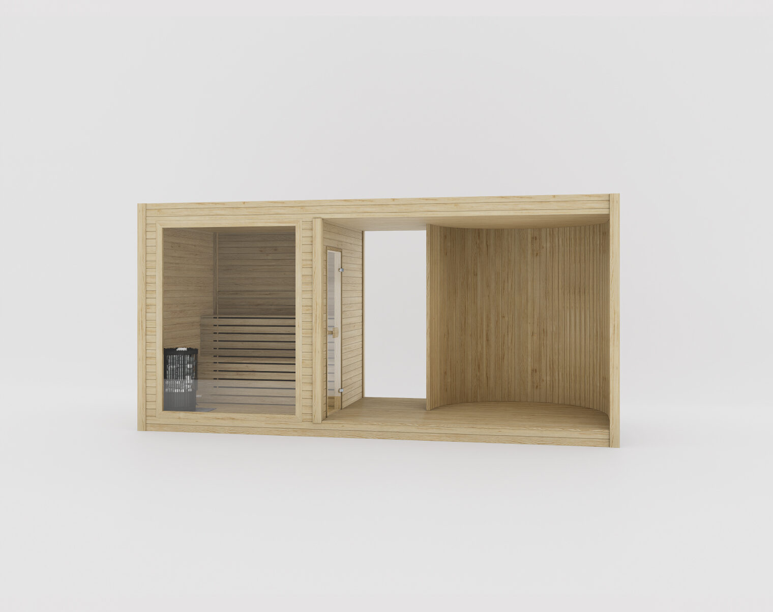 Благодаря открытому фронтальному дизайну Tauras Modular Air создаёт лёгкую, воздушную атмосферу, при этом полностью сохраняя спа-опыт. На одном конце расположен модуль сауны, а другой может оставаться открытым или быть оснащён встроенной горячей ванной или джакузи, обеспечивая гибкость под ваше пространство и образ жизни. Чистые линии и открытая планировка делают её идеальным выбором для расслабленных уличных зон, где важны лёгкость и комфорт.Для большей приватности рассмотрите Tauras Modular View с фронтальным стеклянным модулем. Для дополнительного пространства и гибкости выберите Tauras Modular Balance, которая включает центральную зону для переодевания.